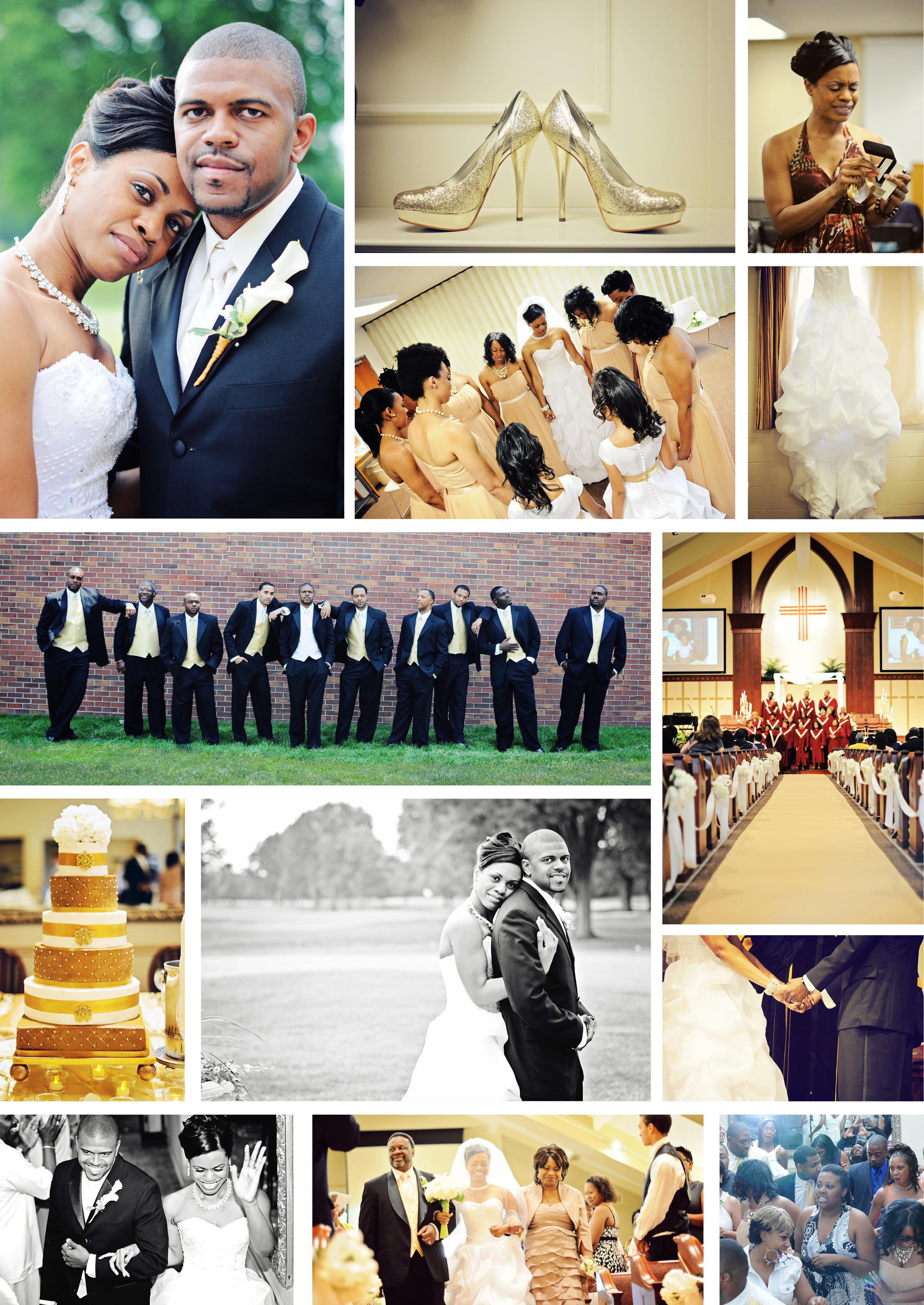 6.04.11 | Enesha and Keith got married at Castleview Baptist Church in Indianapolis on their special day. I was there to watch the day progress into a beautiful ceremony. Enesha wore this cute, sparkly gold heels the whole day – kudos to you! The reception was at this beautiful location of Broadmoore Country Club and I must say this was a very fun reception! Every person in the wedding party had their own entrance song and dance which was very unique and something I have never seen before. Their guest definitely know how to party! The dance floor was full for most of the night which is great for photos! Thank you Enesha and Keith for letting me be a part of your day.
