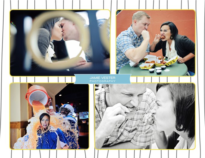 Felicia and Cody’s engagement session in Broadripple was so much fun! No really, it was! We started off at the Indianapolis Art Center then made our way to the streets of Broadripple and the Monon Trail. By the end of the session they were eating chicken wings – there’s a story behind that. Felicia and Cody met during a chicken wing eating contest! What a great “how we fell in love” story, right?! I always say that a couple that laughs together makes for great photos 🙂