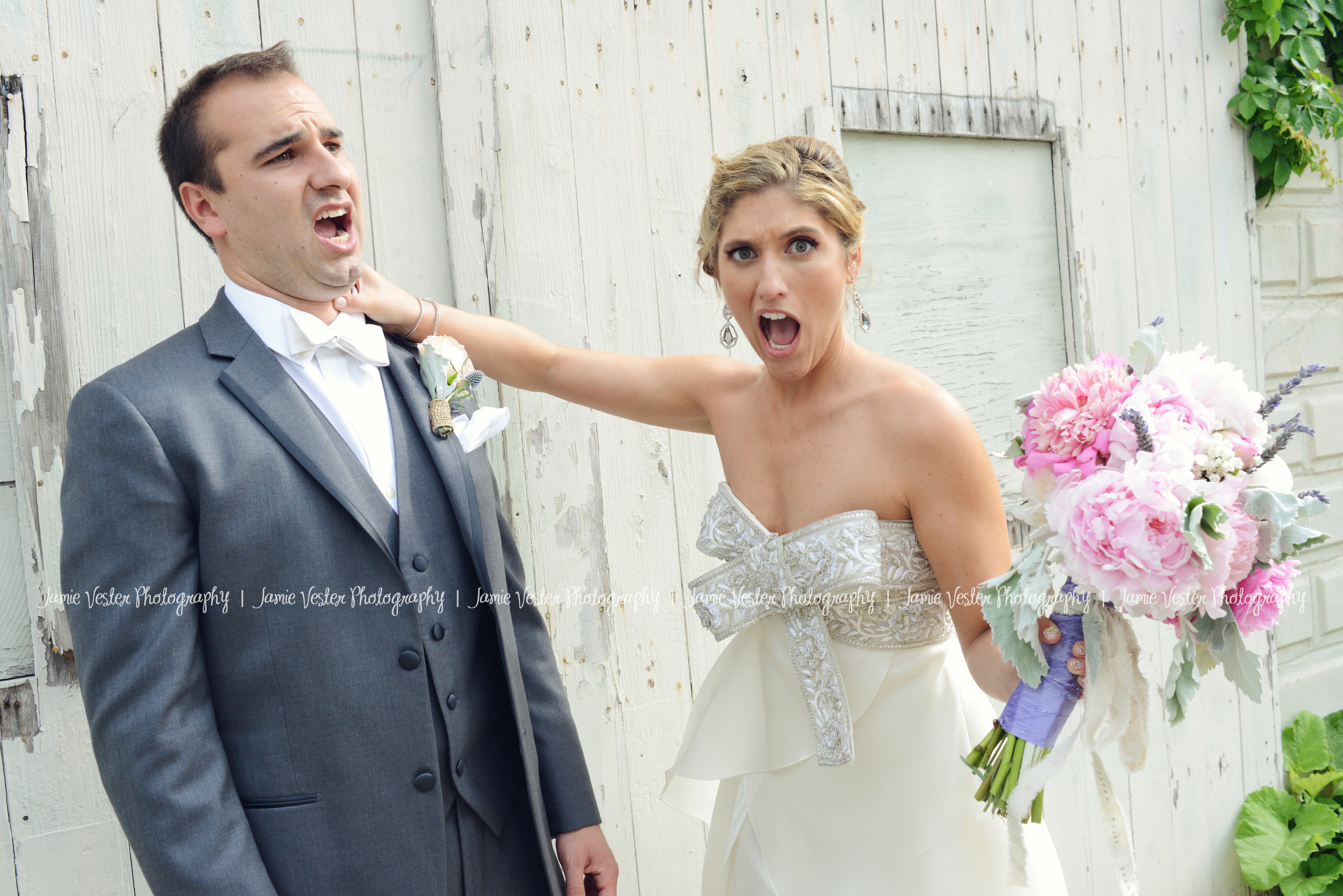 Darby and John are a FUN couple so I wanted to capture their fun nature in their wedding photos. I think Darby was laughing the whole time which is awesome because you want to have fun on your wedding day right? π We were so worried the weather was going to be rainy because that was what was predicted for the weather that day. Good ole unpredictable Indiana weather turned out sunny; perfect for outdoor photos before the ceremony. I know I have said this a million times before, but doing the first look photos before the wedding ceremony is less stressful for everyone. Once the ceremony is over, you can actually enjoy your cocktail hour and visit with family and friends – afterall, they did come to your wedding to see you! I’m so happy that Darby and John took advantage of this so they could enjoy their wedding day.