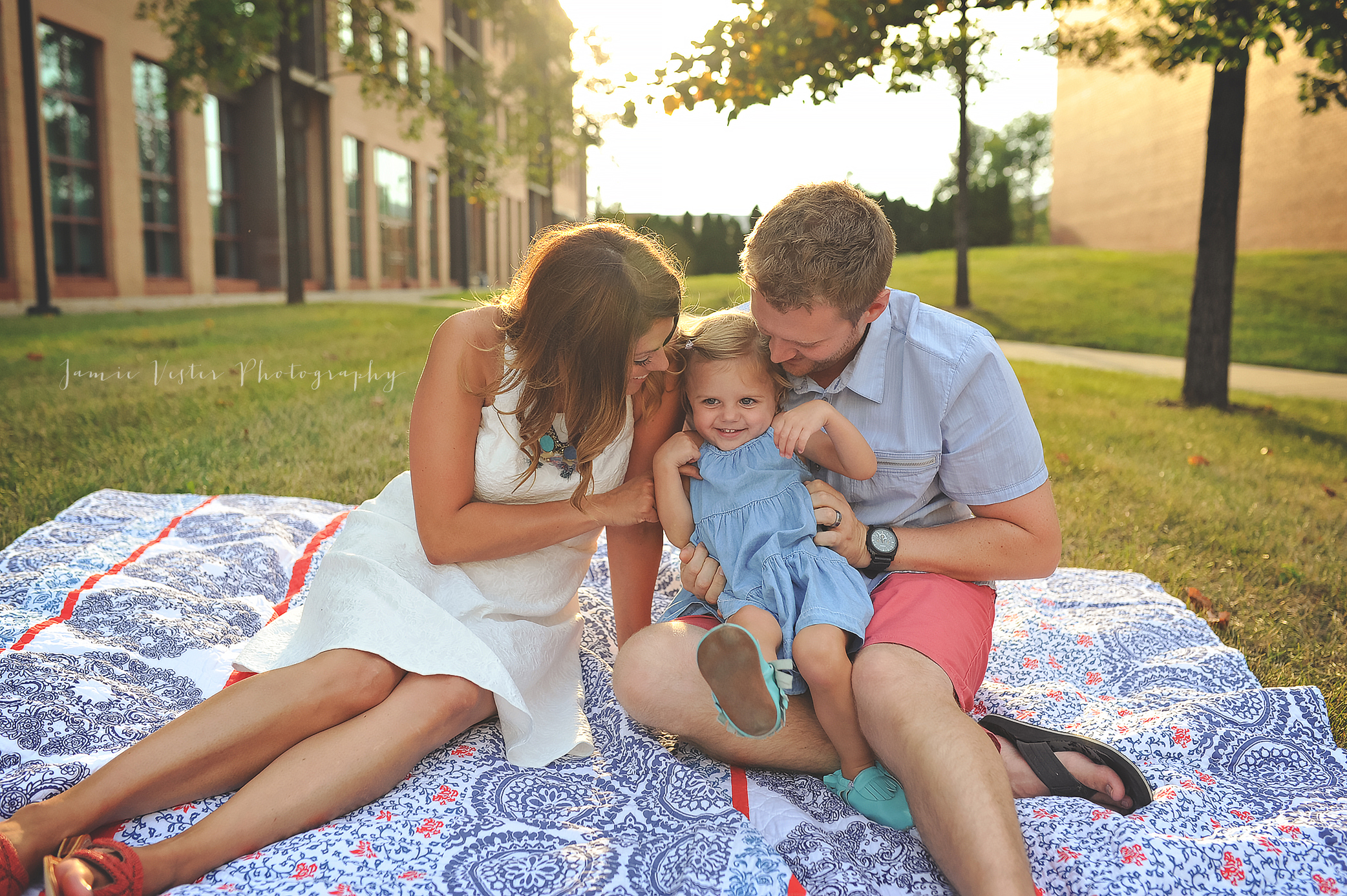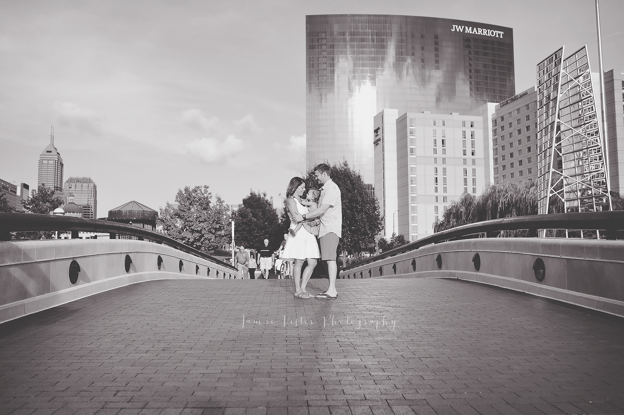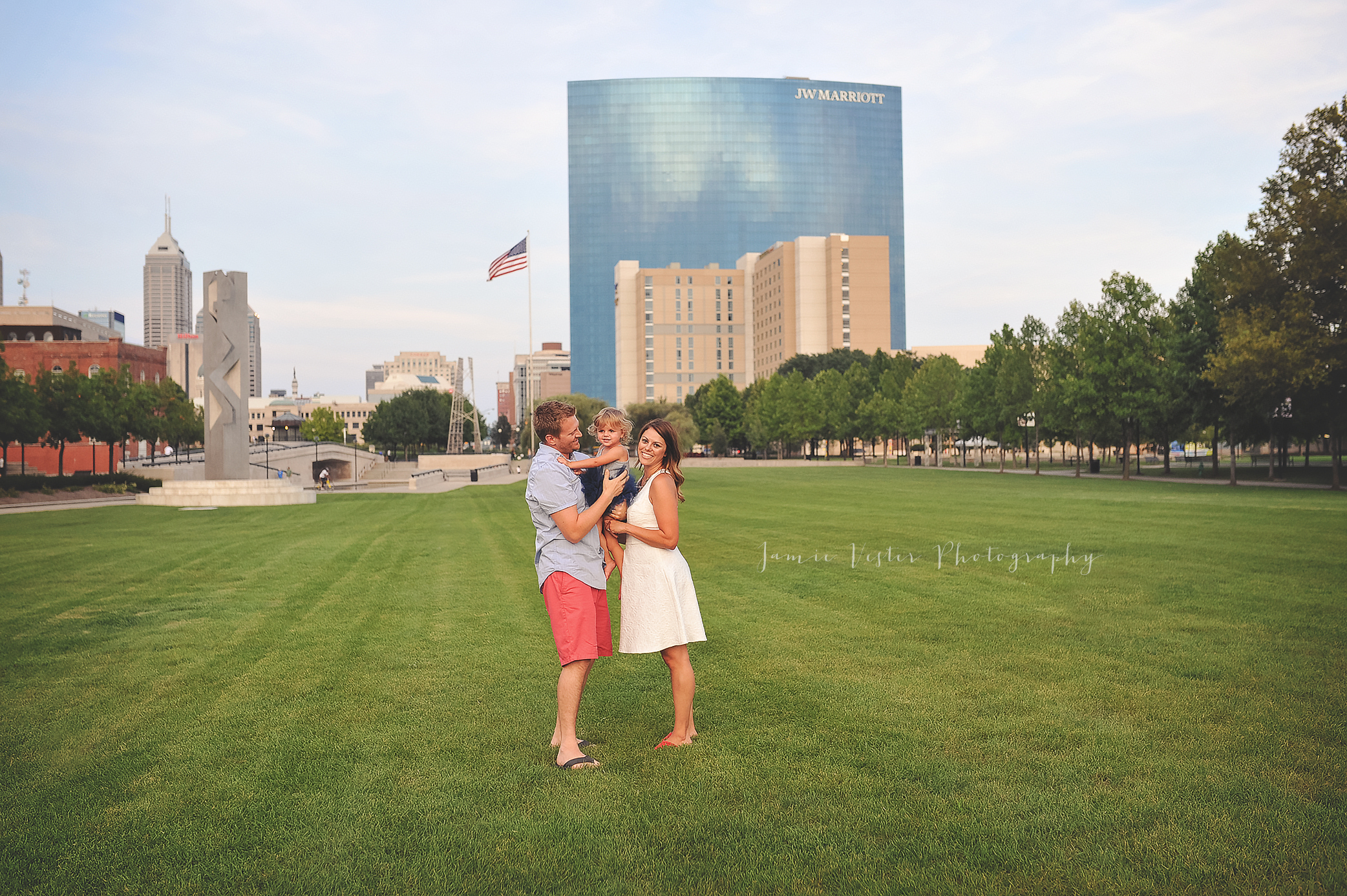 Harlow such a sweet little girl with a beautiful name. I have been photographing the McIntire family for a few years now. Natalie was pregnant with Harlow the first time I met them. She was full of energy and excitement! In the past we have done their family sessions outdoors in nature, but this time we decided to do a more urban landscape in downtown Indianapolis on the Canal. Gotta love these Indiana sunsets!